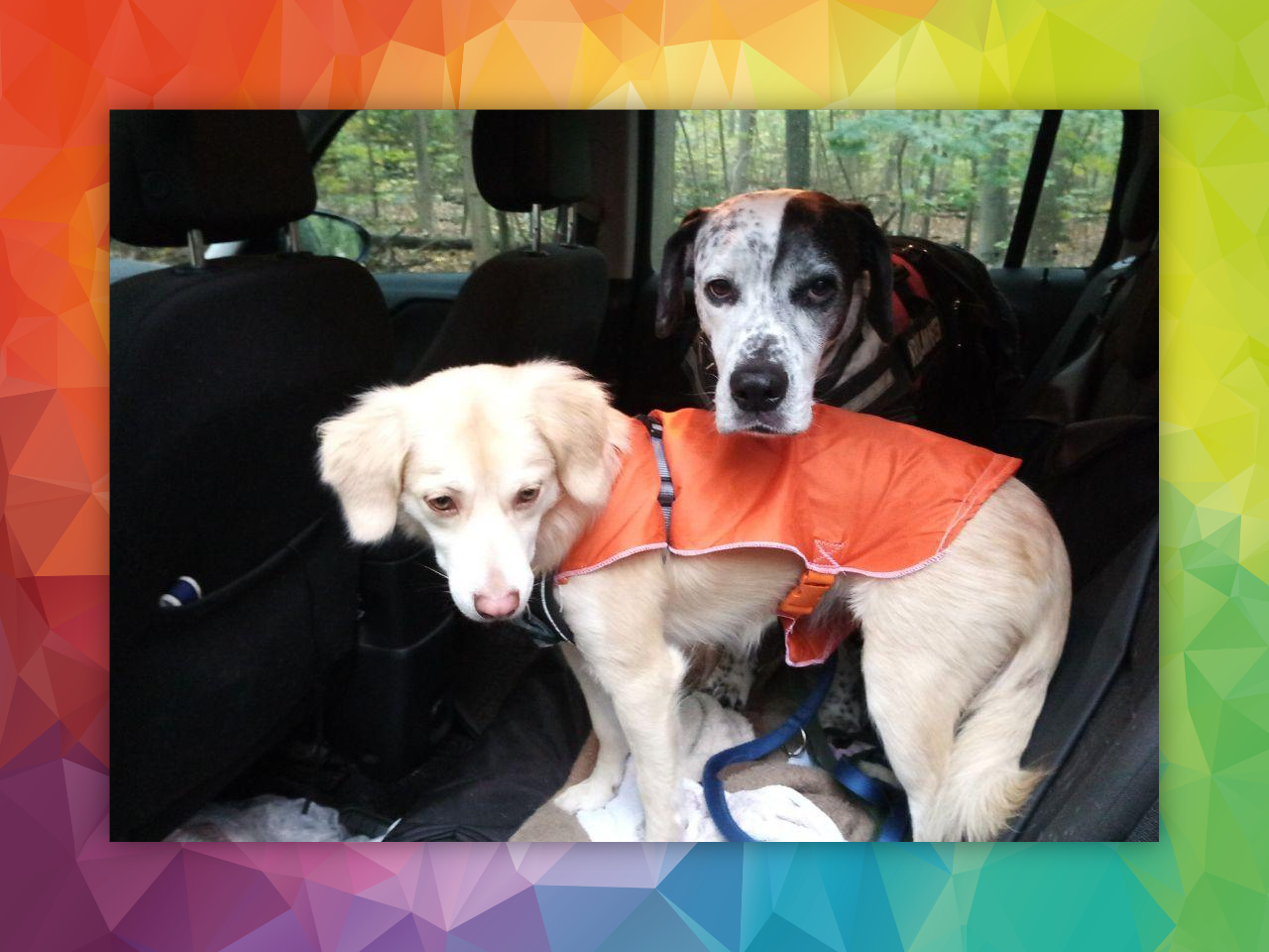 (Der Blick! Kara mag Regen an sich überhaupt nicht. Mäntelchen heißt Regenwetter, aber der Hund muss nun mal und muss dann mal raus an die frische Luft.)